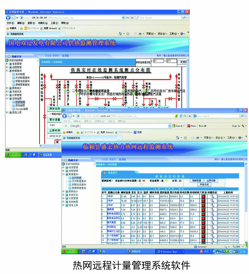 一、系統(tǒng)簡介 熱網(wǎng)遠(yuǎn)程計量管理系統(tǒng)實現(xiàn)用戶供氣供熱信息的實時準(zhǔn)確監(jiān)控,為供熱廠家平衡熱網(wǎng)運(yùn)行狀態(tài)提供了快速真實的現(xiàn)場數(shù)據(jù)。系統(tǒng)為供熱方提供了現(xiàn)代化的計量和收費(fèi)管理,幫助用戶快速發(fā)現(xiàn)熱網(wǎng)運(yùn)行漏洞,對于用戶盜熱行為實現(xiàn)快速聲光報警并且短信通知相關(guān)人員。 二、系統(tǒng)組成 v 監(jiān)控中心:中心服務(wù)器、外網(wǎng)固定IP、熱網(wǎng)管理系統(tǒng)軟件; v 通信網(wǎng)絡(luò): 基于移GPRS或電信CDMA網(wǎng)絡(luò)平臺; v 測控終端:IC卡控制終端、DTU模塊; v 計量儀表:積算儀、流量計、壓力變送器、溫度變送器、電動閥門。